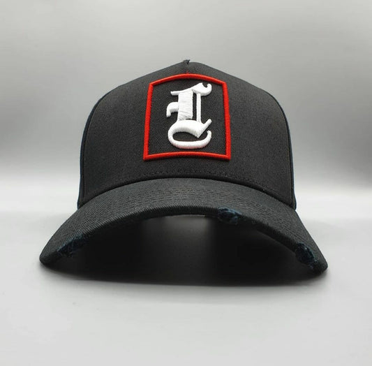 ONYX BLACK & RED DISTRESSED BASEBALL CAP