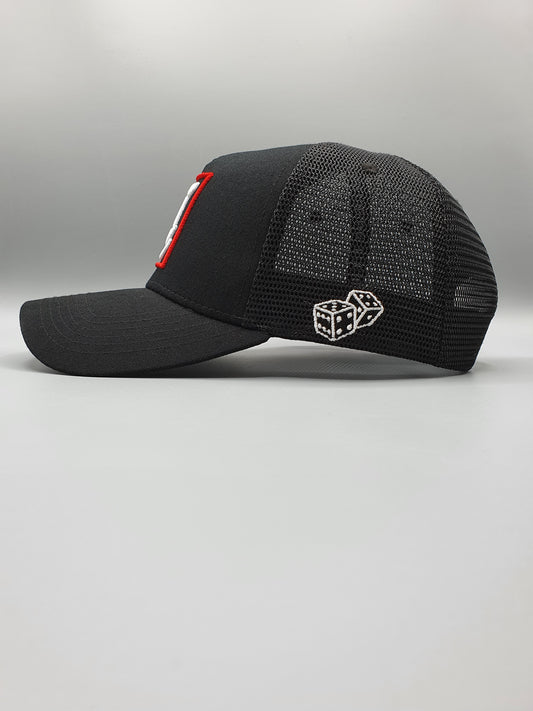 ONYX BLACK AND RED TRUCKER CAP